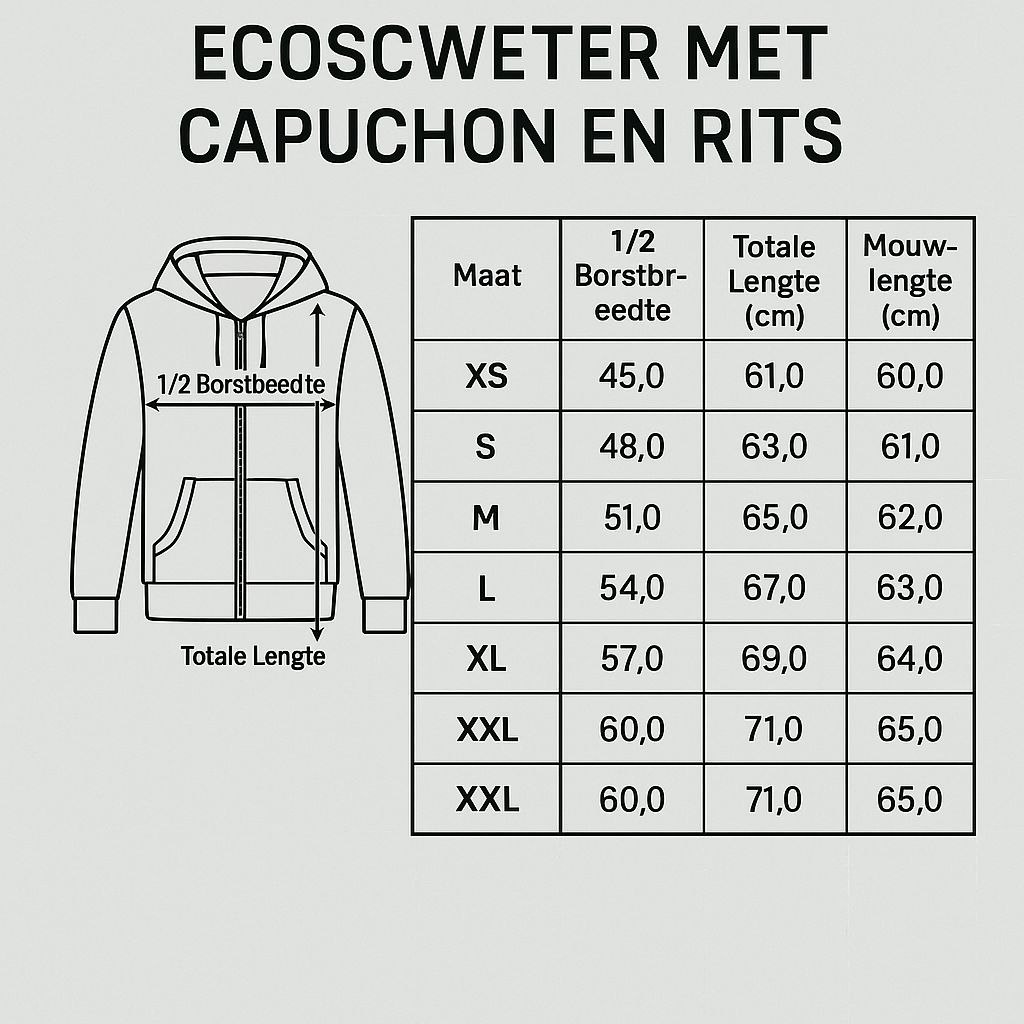 85% katoen / 15% polyester. Gemaakt van 85% biologisch katoen en 15% gerecycled polyester post-consumer. Buitenoppervlak 100% gekamd katoen. Geborsteld fleece 3 draden LSF (Low Shrinkage Fleece) aan de binnenkant. Enzymgewassen. Rechte snit. Kangoeroezakken. Ritssluiting in toon-op-toon nylon. Gevoerde capuchon 100% katoen, jerseykatoen 180 g. 1x1 ribboord in buisconstructie voor een betere afwerking aan de mouwuiteinden en de onderkant. Nektape in toon-op-toon jersey en halvemaanvormige afwerking aan de binnenkant van de kraag. Afwerking dubbel stiksel aan mouwuiteindenn, onderkant en hals. Geen merklabel in de kraag, maar enkel een maatlabel voor eenvoudige personalisatie.